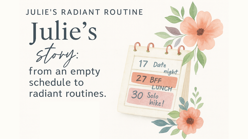 When the kids head to their dad’s for the weekend? For Julie, the house went from chaotic to achingly quiet in an instant. The silence wasn’t freedom—it was a void. She found herself watching the clock, counting down the hours until they came back, wondering what to do with herself in the meantime. But what if weekends like that didn’t feel empty at all? Imagine a Radiant Routine Plan—mornings that start with journaling and coffee, evenings with a glass of wine and a good book instead of scrolling, and time carved out for new adventures she’d always put off. Julie’s story reflects so many women in this season: moms navigating not just an emptier nest, but an emptier house part-time. And the beautiful truth? Those quiet stretches don’t have to feel lonely. They can become sacred space for rediscovering you.